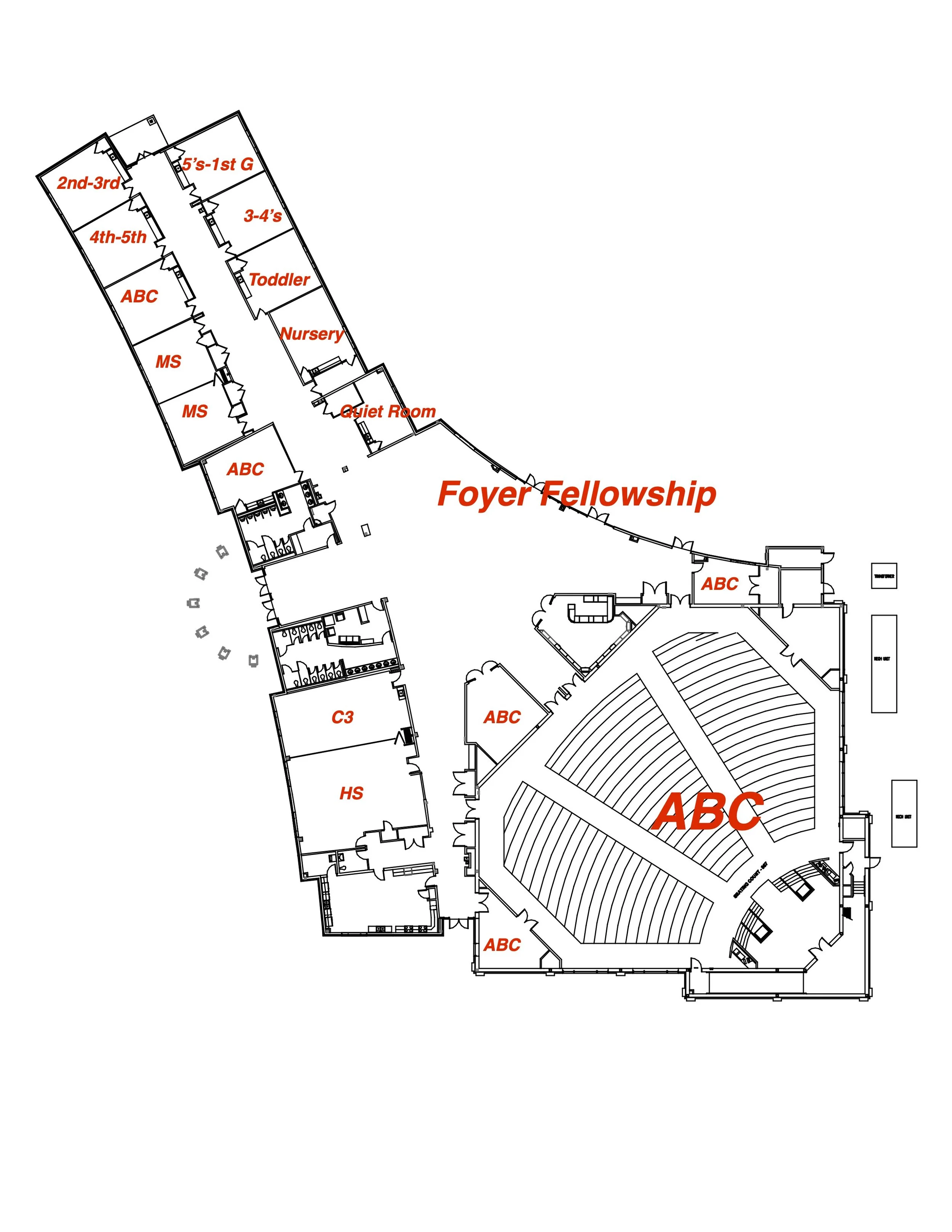 The facility on Sovereign Grace Drive provides a much larger auditorium, more and larger classrooms, nearly double the amount of parking spaces, and about three times as much acreage for potential expansions. Overflow parking is available across the street at the High School.